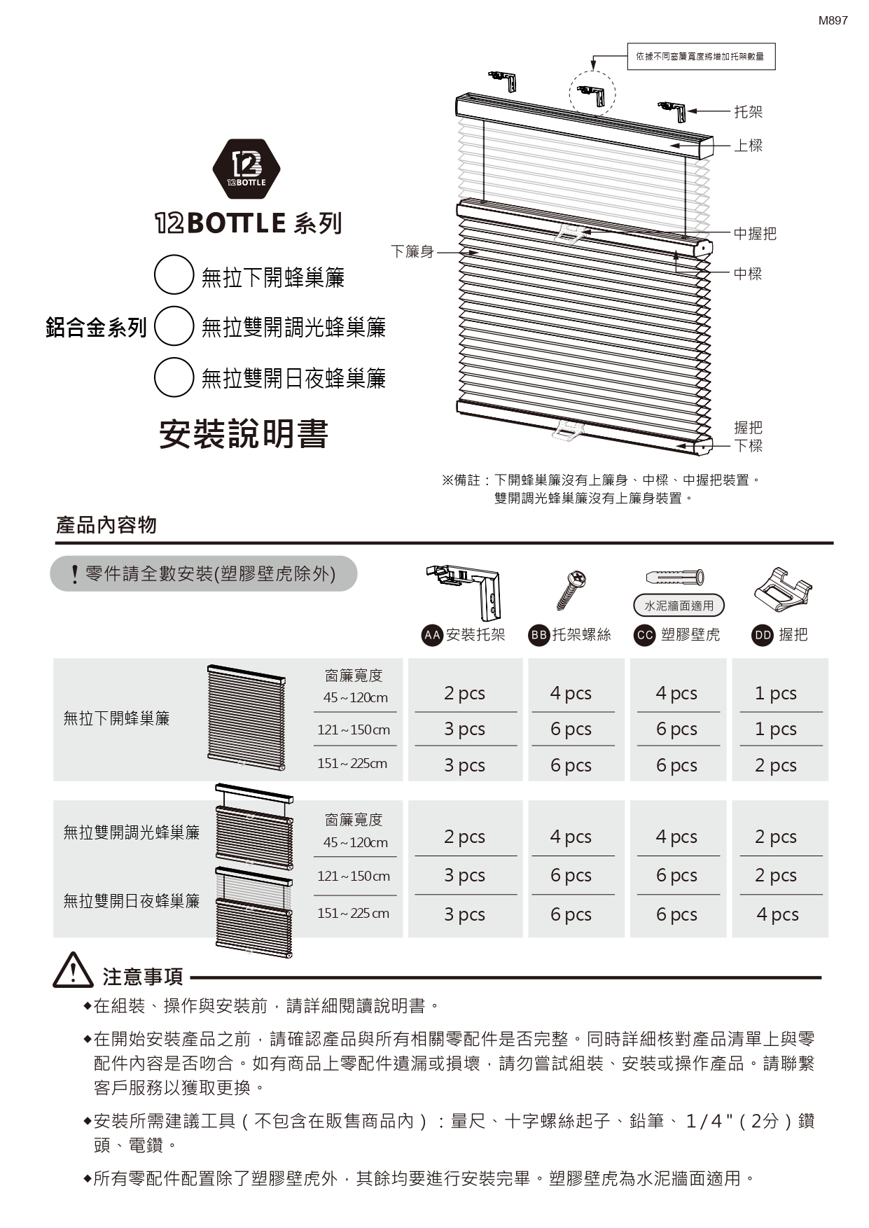 請避免孩童拿取零件、珠鍊、簾面。如有安裝問題,請洽幔室布緹服務人員