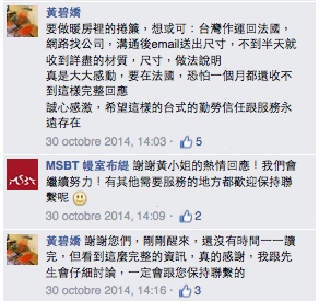 我跟法國的鄰友提到,一週裡八封以上的信件,緊湊而詳細的答覆我的各種疑難雜症,他們也覺得太不可思議了,這在法國超難想像的。回台灣拜訪您們,看到這麼年輕有活力的團隊,感覺十分安心。海運寄來法國也十分快速方便,我們真的很滿意,也謝謝貴公司這麼貼心的還提供了幾組更替性較高的零件,這樣我們就可以自行處理長年使用後可能的狀況了