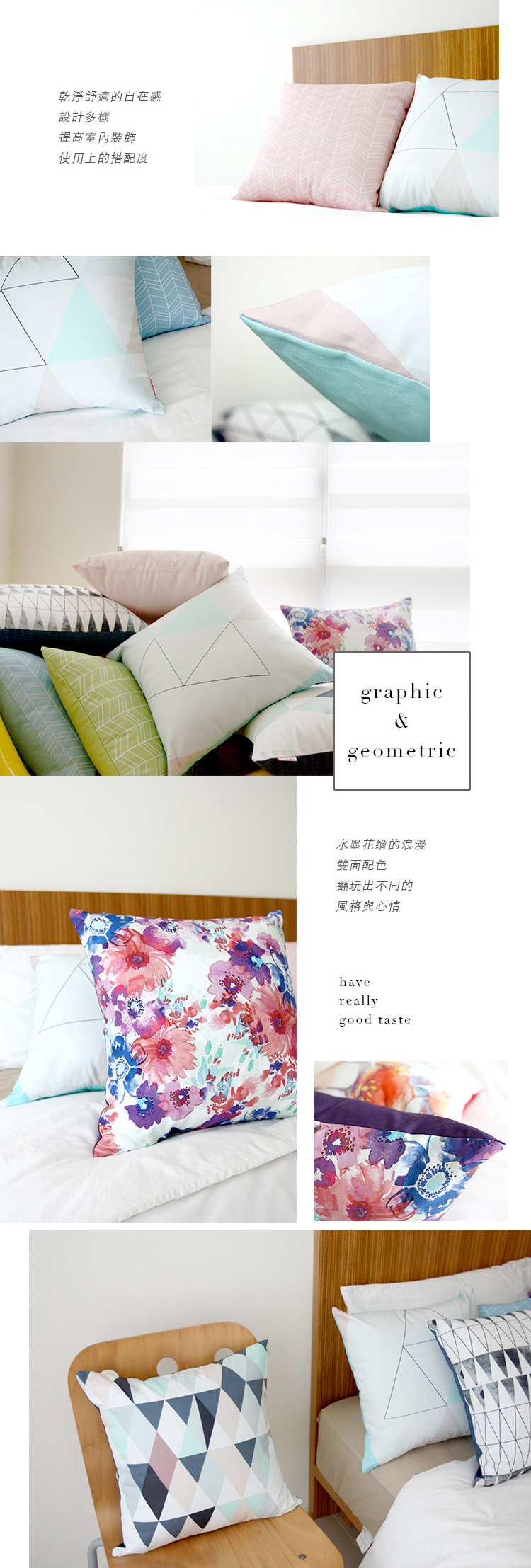 幔室布緹抱枕色彩活潑、款式多樣
